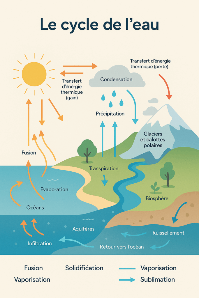 Chaque changement d’état correspond à un transfert d’énergie thermique entre les molécules d’eau.