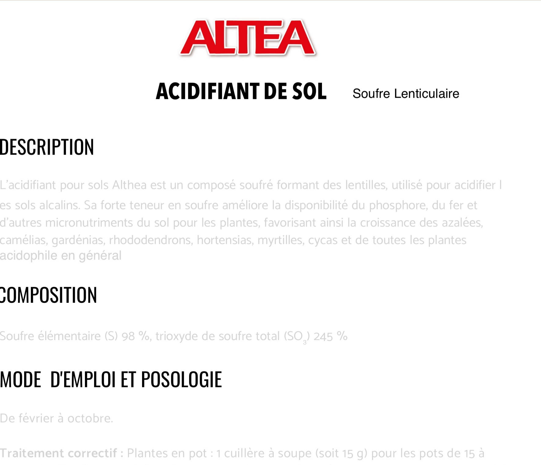 FT Fournisseur – Acidifiant sol ALTEA – soufre lenticulaire