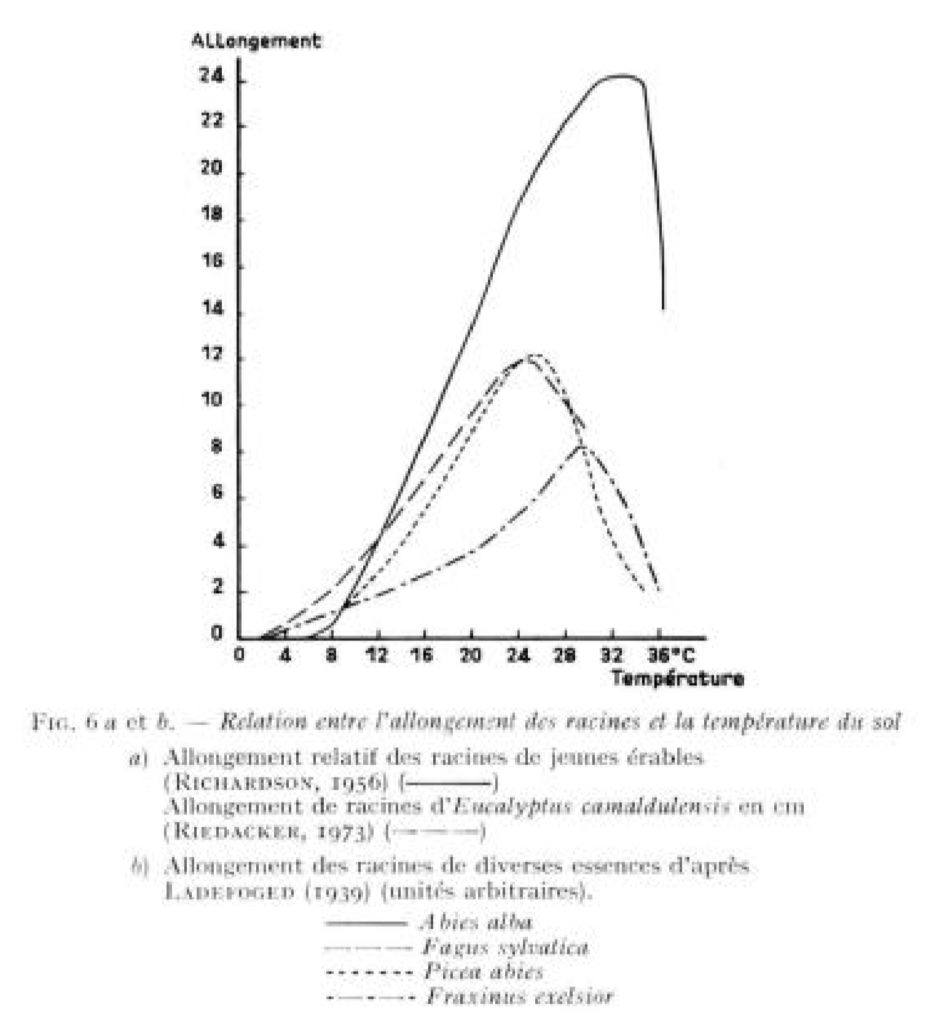 - Riedacker, A. – Rythmes de croissance et de régénération des racines des végétaux ligneux.