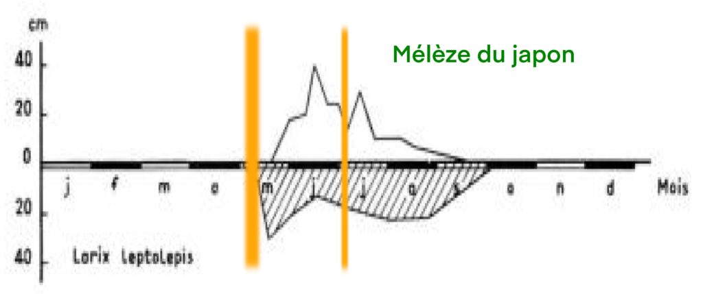 Mélèze du Japon, 2 périodes prélèvements ou rempotages début mai, et juillet.